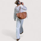 Setzen Sie ein stilvolles Statement mit dieser formbetonten Tragetasche, die modernes Design mit praktischer Alltagstauglichkeit vereint.